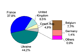 Darstellung der Verursacher von nuklearem Risiko für Luxemburg, RT-Szenario und IAEA-Szenario